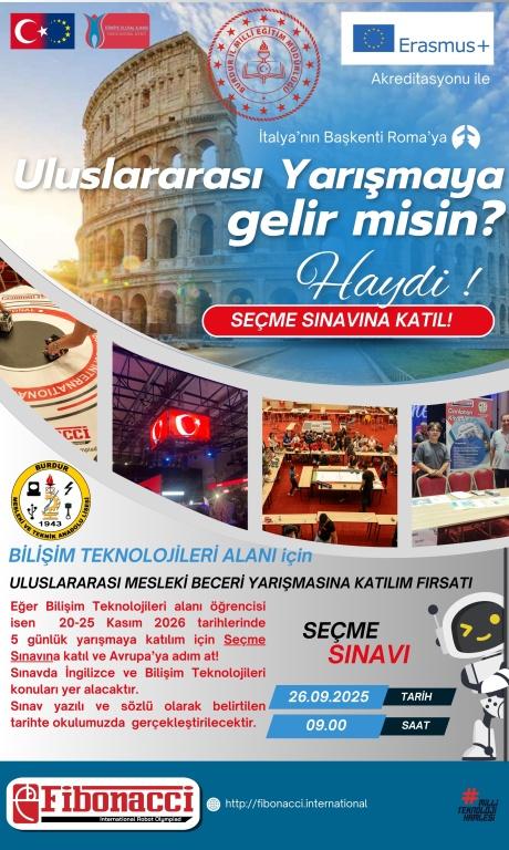 Uluslararası Mesleki Beceri Yarışmasına Katılım için Seçme Sınavı 26.09.2025 tarihinde 09:00'da İmam hatip binasında yapılacaktır.
